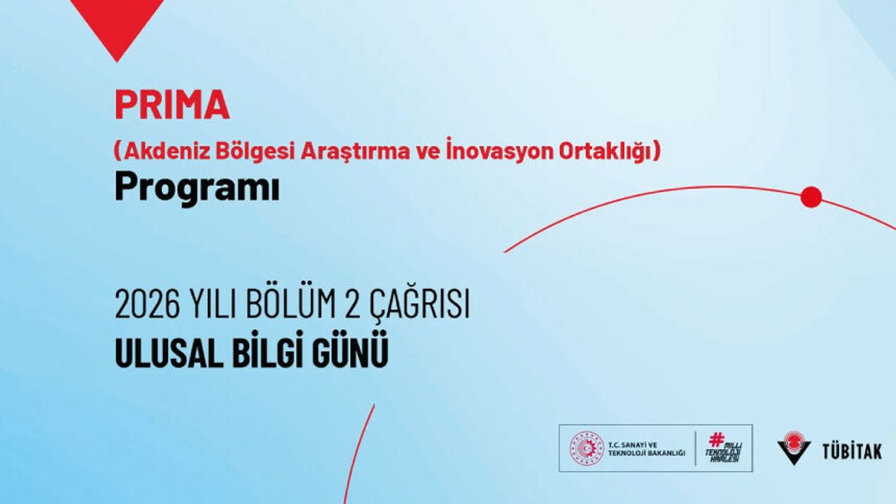 PRIMA (Akdeniz Bölgesinde Araştırma ve İnovasyon İşbirliği) Programı 2026 yılı Bölüm 2 çağrısı Ulusal Bilgi Günü 15 Nisan 2026 tarihinde saat 10:00’da çevrim içi olarak gerçekleştirilecek. Bilgi gününde çağrıya ve başvuru süreçlerine yönelik bilgi paylaşımında bulunulacaktır. Etkinlik akademi, sanayi ve kamudan tüm bilim insanlarımızın katılımına açıktır. Etkinlik dili Türkçe olup etkinliğe katılmak için ilgili bağlantıdan kayıt olunması gerekmektedir. Kayıt tamamlandıktan sonra toplantı bağlantısı paylaşılmaktadır.