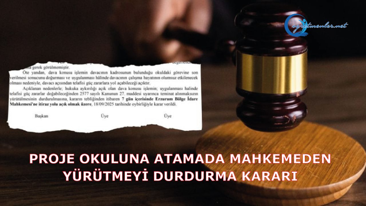 Özel program ve proje uygulayan okulda öğretmen olarak görev yapan sendikamız üyesi, görev süresinin sona ermesi üzerine, davalı Bakanlık tarafından 05.02.2025 tarihinde yayımlanan 2025 Yılı Millî Eğitim Bakanlığına Bağlı Özel Program ve Proje Uygulayan Eğitim Kurumlarına Öğretmen Atama ve Yönetici Görevlendirme Kılavuzu hükümleri doğrultusunda, görev yaptığı okula atanmak üzere tercihte bulunmuş, tüm şartları taşımasına ve liyakat yönünden uygun olmasına rağmen, tercih ettiği kendi okuluna atanamamıştır. Bunun üzerine açmış olduğumuz davada; Ağrı İdare Mahkemesi’nin 2025/1042 Esas sayılı ve 18.09.2025 tarihli kararında, “…özel program ve proje uygulayan eğitim kurumlarına öğretmen ataması konusunda Millî Eğitim Bakanına tanınan takdir yetkisinin, kariyer ve liyakat ilkeleri çerçevesinde, kamu hizmetinin verimliliği, etkinliği ve kamu yararı ile kişi yararı arasında bir denge kurulmak suretiyle objektif şekilde kullanılması gerektiği dikkate alındığında; özel program ve proje uygulayan okulda dört yıllık görev süresi dolan ve 05.02.2025 tarihinde yayımlanan ilgili kılavuz hükümleri doğrultusunda yeniden öğretmen olarak atanmak üzere başvuruda bulunmasına rağmen 08.04.2025 tarihinde açıklanan sonuçlara göre tercihlerine yerleştirmesi yapılmayan davacının, tercihlerine atanmamasına ilişkin işlemin, kariyer ve liyakat ilkeleri çerçevesinde belirlenecek somut ve objektif kriterlere göre değerlendirme yapılmaksızın ve kamu yararı ve hizmet gerekleri gözetilmeksizin tesis edildiği anlaşıldığından, dava konusu işlemde hukuka ve mevzuata uyarlık bulunmadığı sonucuna ulaşılmıştır.” denilerek, dava konusu işlemin yürütülmesinin durdurulmasına karar verilmiştir.