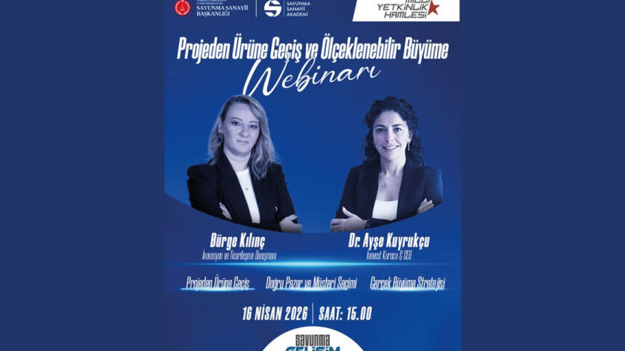 "Projeden Ürüne Geçiş ve Ölçeklenebilir Büyüme" Webinarı 16 Nisan'da Savunma Gelişim'de Sizlerle