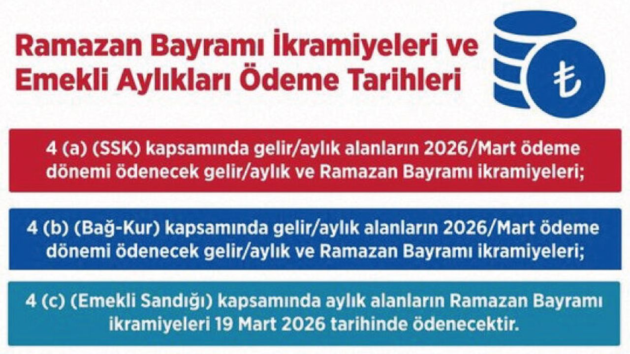 Emekli vatandaşlarımızın bayram ikramiyeleri ve aylık ödemeleri Ramazan Bayramı öncesinde 14 Mart ile 19 Mart tarihleri arasında banka hesaplarını yatırılacak. Ülkemizin emektarları kıymetli emeklilerimiz ve aileleri için hayırlı olmasını diliyorum.