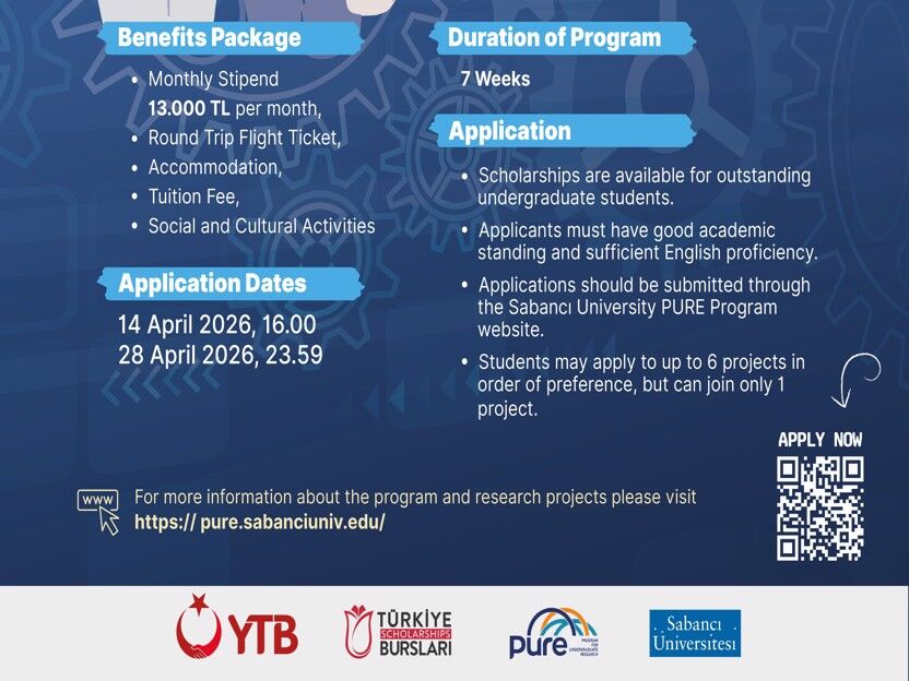 Türkiye Bursları ve Sabancı Üniversitesi iş birliğiyle sunulan 7 haftalık program, başarılı lisans öğrencilerine Sabancı Üniversitesi’nde benzersiz bir yaz araştırma deneyimi sunmaktadır!