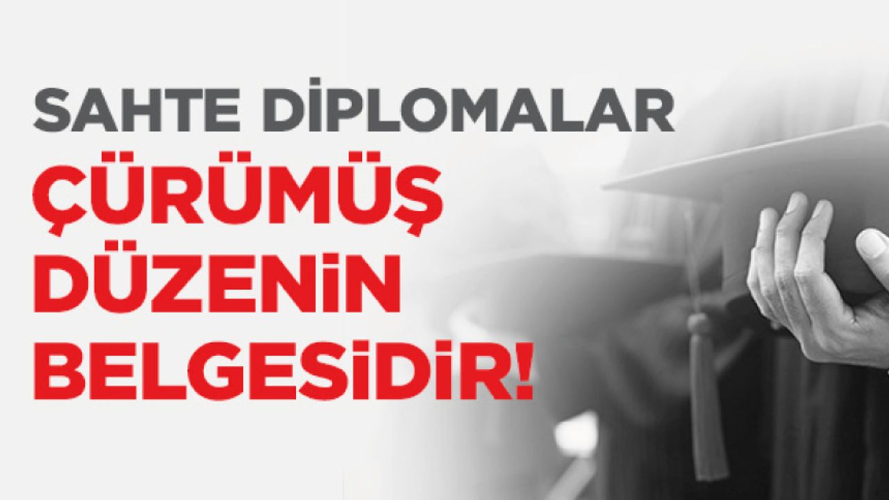 Bu sahtecilik şebekesinin tüm bağlantıları ortaya çıkarılmalı, siyasal uzantıları ifşa edilmeli, sahte diplomalıların tamamı teşhir edilmeli, görevleri iptal edilmeli, haklarında yargı süreci derhal başlatılmalıdır. Biz, gece gündüz çalışan, gerçek bilgiyle emek veren gençlerin, atanmayan öğretmenlerin, işsiz kalan akademisyenlerin hakkını savunmaya; Cumhuriyet’in kurucu değerlerini kararlılıkla savunmaya devam edeceğiz.