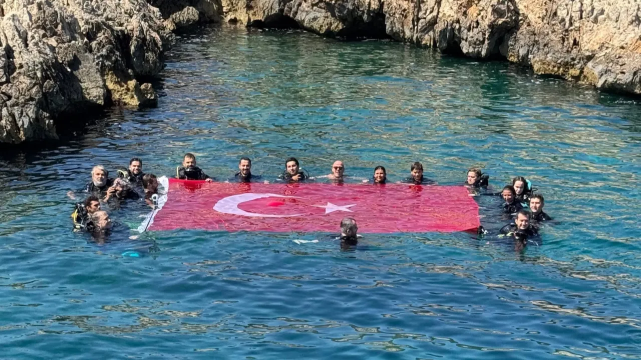 Keşan’ın Mecidiye Sahili açıklarında bir araya gelen dalgıçlar, denizin berrak sularında dev Türk bayrağını açarak hem su altında hem de su yüzeyinde unutulmaz bir kutlama gerçekleştirdi.