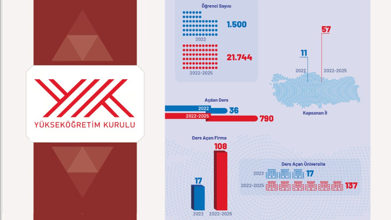 2022-2023 Bahar Dönemi’nde ders açan üniversite sayısı 17 iken bu sayı 2025-2026 Güz Dönemi’nde 76’ya yükseldi. Açılan ders sayısı ise 36’dan 117’ye yükseldi. Dersi açılan firma sayısı 17’den 48’e yükseldi.