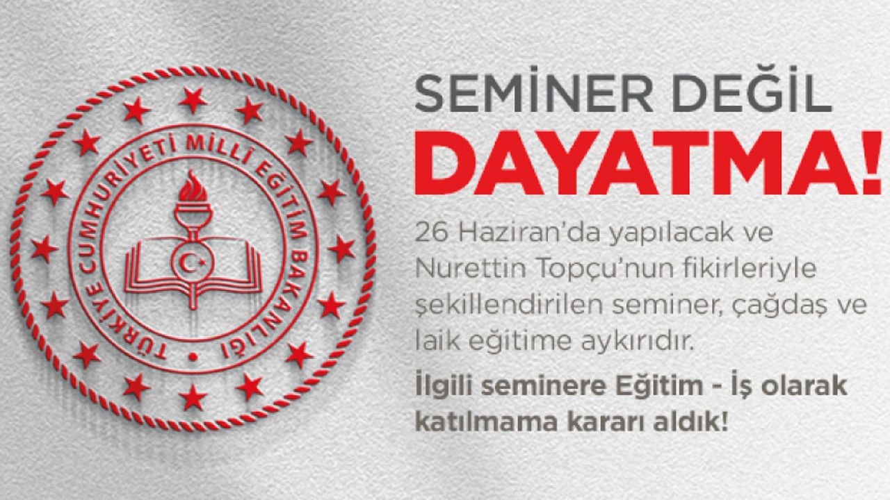 İstanbul İl Milli Eğitim Müdürlüğü ve Esenler Belediyesi iş birliğinde gerçekleşecek olan bu seminer programı Milli Eğitim Bakanlığı mesleki çalışma programı içinde yer almadığı gibi gönüllülük esasına da dayanmamaktadır.