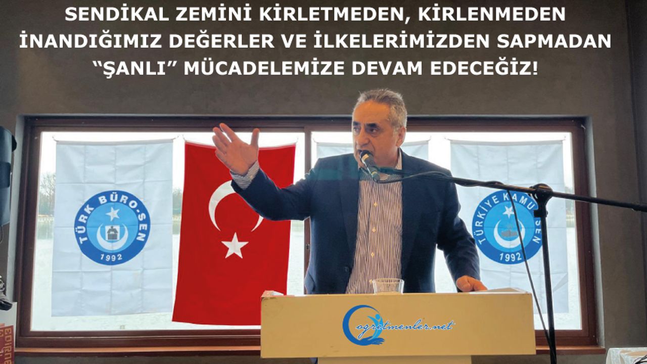 Bütün bu olumsuz şartlara ragmen; gerçek sendikacılığın adresi Türk Büro Sen’e gönül ve omuz veren yürekli ve cesur yüreklere teşekkür ederken, dün olduğu gibi bugün ve gelecekte, emeğin hakkını, memurumuzun insanca yaşayabileceği bir maaş ve ücret mücadelemizi yükseltecek, kirlenen, kirletilen sendikal zeminde “Zibilde Açan Bir Gül Gibi” kalmaya devam edeceğiz.