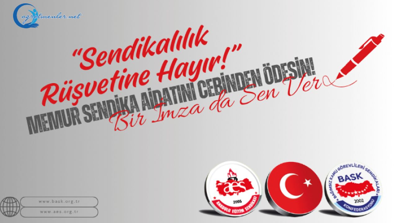 2025 8. Dönem Toplu sözleşmeleri öncesinde bu ödentinin miktarı ve kapsamı üzerinden rekabete giren sendikacıların aksine “bu rüşveti kaldırın” çağrısı yapan BASK ve Anadolu Eğitim Sendikası Genel Başkanı Mehmet Alper ÖĞRETİCİ; “sendikamı kendim seçer, aidatımı öder ve denetlerim” demiştir.
