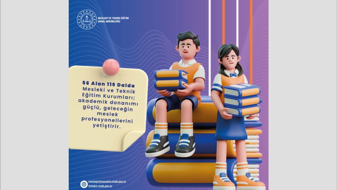 Sevgili Gençler, Geleceğin Meslekleri Sizleri Bekliyor! 56 Alan 119 Dalda Mesleki ve Teknik Eğitim Kurumları; akademik donanımı güçlü, geleceğin meslek profesyonellerini yetiştirir. Hayallerindeki gelecek için yerin hazır! http://mtegm.meb.gov.tr