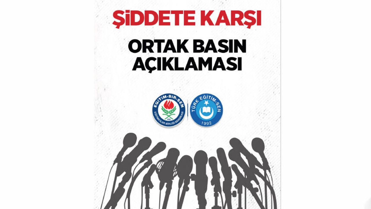 ŞİDDETE KARŞI ORTAK BASIN AÇIKLAMASI Genel Başkanımız Ali Yalçın, Türk Eğitim-Sen Genel Başkanı Talip Geylan ile birlikte Kahramanmaraş’ta saldırının yaşandığı Ayser Çalık Ortaokulu önünde bugün saat 14.30’da ortak basın açıklaması yapacaktır.