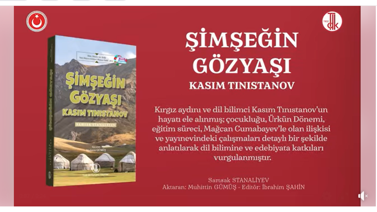 Yeni Yayın Şimşeğin Gözyaşı Kasım Tınıstanov Samsak STANALİYEV Aktaran: Muhittin GÜMÜŞ “Dilde, Fikirde, İşte Birlik Türk Dünyası Edebiyat (Roman) Ödülleri” - 2022