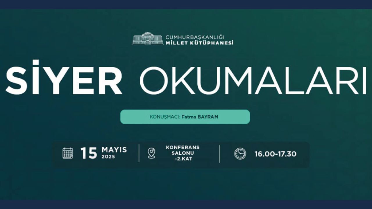 Vaize ve yazar Fatma Bayram, Cumhurbaşkanlığı Millet Kütüphanesi Konferans Salonu’nda (-2. Kat) 15.05.2025 tarihinde 16.00-17.30 saatleri arasında “Siyer Okumaları” konulu bir seminer gerçekleştirecektir.