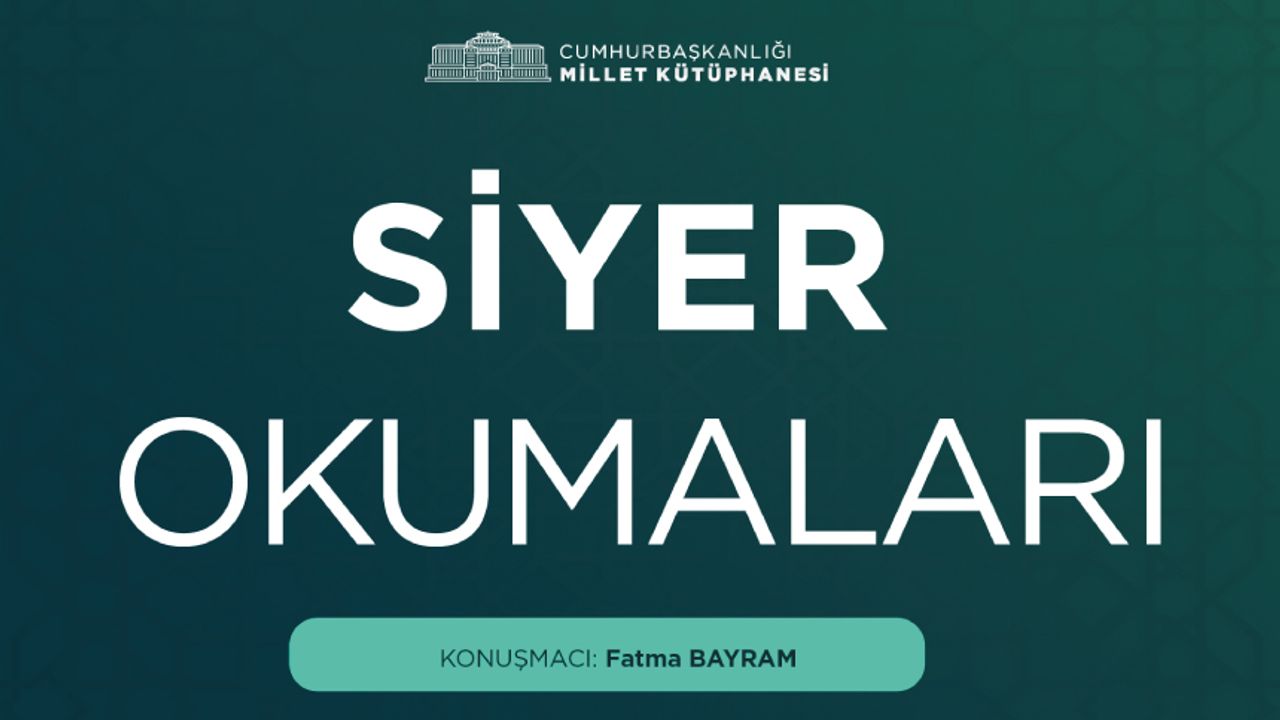 Vaize ve yazar Fatma Bayram, Cumhurbaşkanlığı Millet Kütüphanesi Konferans Salonu’nda (-2. Kat) 04.12.2025 tarihinde 15.00-16.30 saatleri arasında “Siyer Okumaları” konulu bir seminer gerçekleştirecektir.