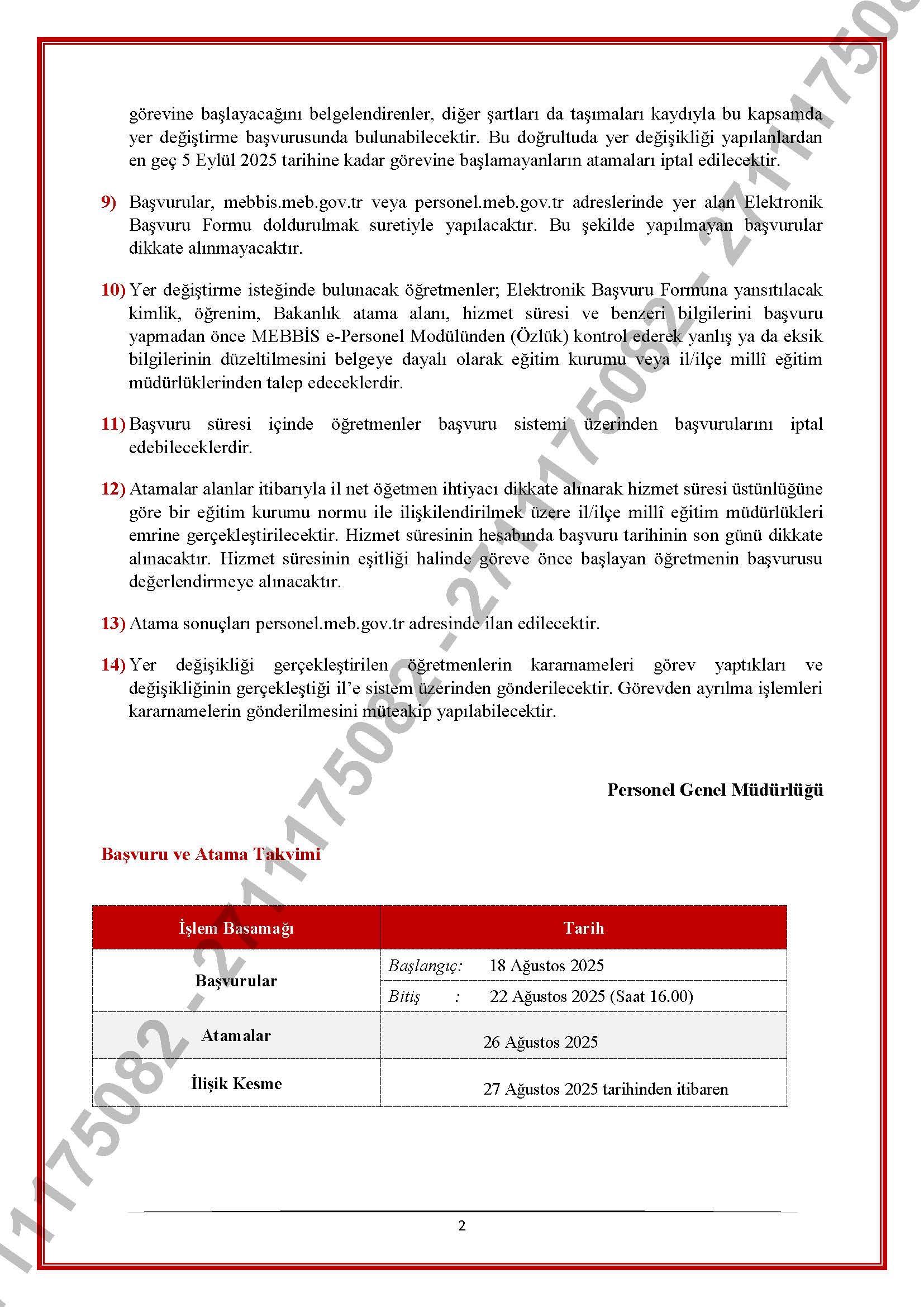 Millî Eğitim Bakanlığı Personel Genel Müdürlüğünün internet sitesinden 2025 Ağustos Her İkisi de Sözleşmeli Personel Mevzuatına Tabi Olarak Görev Yapan Öğretmen Eşlerin Aile Birlikteliğine Bağlı İller Arası Yer Değiştirme Duyurusu yayımlandı