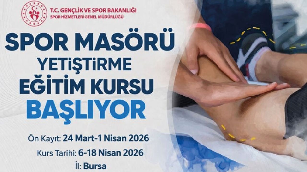 Bursa' da düzenlenecek olan Spor Masörü Yetiştirme Eğitim Kursu, 6-18 Nisan 2026 tarihleri arasında Uludağ Üniversitesi Spor Bilimleri Fakültesinde yapılacaktır.