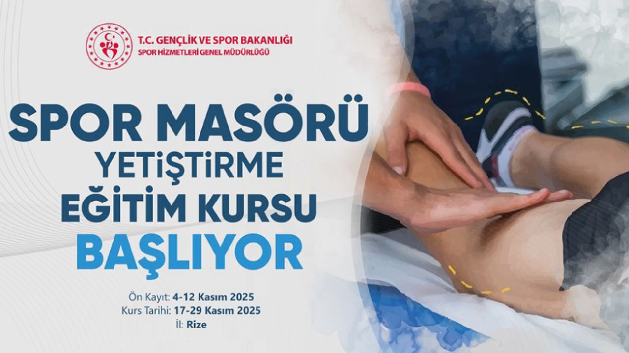 Rize'de düzenlenecek olan Spor Masörü Yetiştirme Eğitim Kursu, 17-29 Kasım 2025 tarihleri arasında Recep Tayyip Erdoğan Üniversitesi Spor Bilimleri Fakültesinde yapılacaktır.