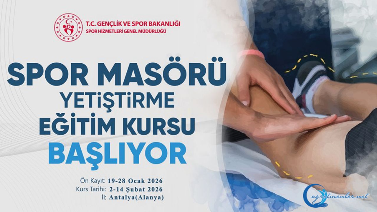 Antalya/Alanya' da düzenlenecek olan Spor Masörü Yetiştirme Eğitim Kursu, 2-14 Şubat 2026 tarihleri arasında Alanya Alaaddin Keykubat Üniversitesi Spor Bilimleri Fakültesinde yapılacaktır.