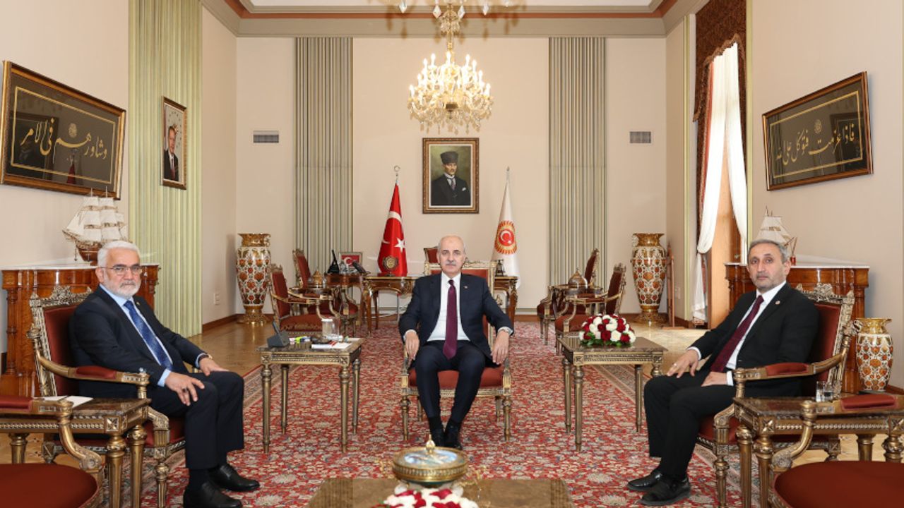 Kurtulmuş, HÜDA PAR Genel Başkanı Yapıcıoğlu ve HÜDA PAR Gaziantep Milletvekili Şahzade Demir ile Meclis'teki makamında görüştü.