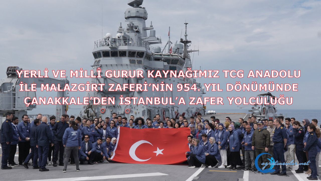 Milli gururumuz TCG Anadolu, Malazgirt Zaferi’nin 954. yılında Çanakkale’den İstanbul’a yol alıyor. Ümidimiz ve istikbâlimiz gençlerimizle, Millî Savunma Bakanlığı’mız iş birliğiyle “Zafer Yolculuğu” başlıyor. #MaviVatanYolculuğu