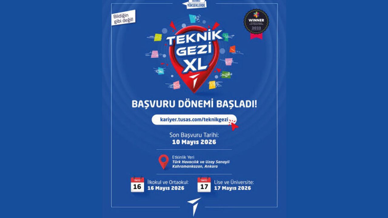 Mühendis ve teknisyenlerimizle birebir tanışma İşe alım ve yetenek programlarımızı yakından tanıma Mühendis ve test pilotlarımızla söyleşiler HÜRJET ve KAAN Müzikali Üretim alanlarımızı yakından inceleme Yaş gruplarına özel tasarladığımız deneyim alanları, atölyeler ve sürpriz hediyelerle unutulmaz bir deneyim seni bekliyor. Kontenjan dolmadan hemen kayıt ol: http://kariyer.tusas.com/teknikgezi Son başvuru: 10 Mayıs 2026 Yer: Türk Havacılık ve Uzay Sanayii – Kahramankazan, Ankara İlkokul & Ortaokul: 16 Mayıs 2026 Lise & Üniversite: 17 Mayıs 2026 *Global Eventex Awards, Best Employer Branding Event, GOLD #GözümüzYükseklerde #BildiğinGibiDeğil #TeknikGeziXL