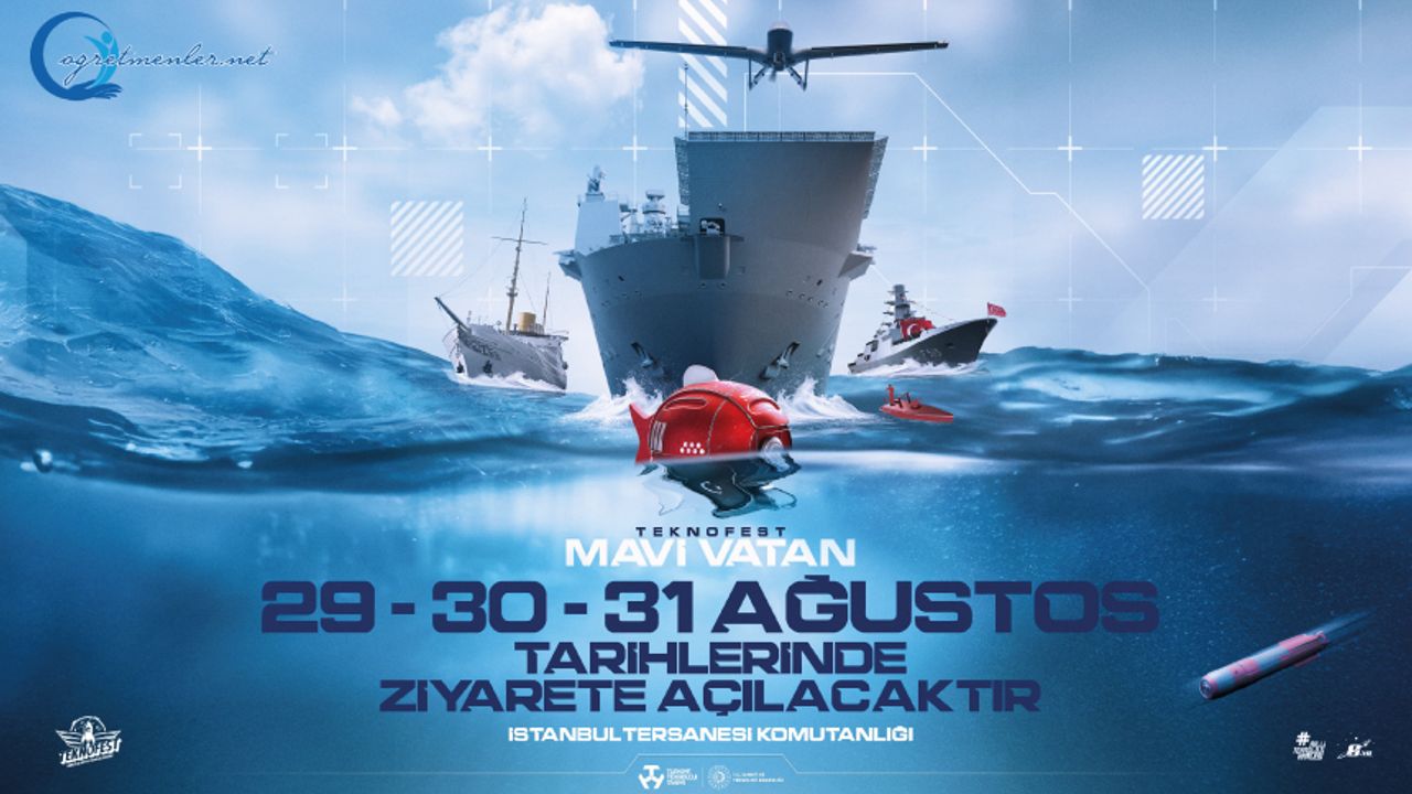 TEKNOFEST Mavi Vatan, 29-31 Ağustos 2025 tarihlerinde İstanbul Tersanesi Komutanlığı’nda ücretsiz olarak ziyaretçilerini ağırlayacak. Yerinizi ayırtmak için online kayıt yaptırmanız yeterli! Ziyaretçi giriş ve çıkışları, kayıt olduğunuz seans saatleri arasında yapılacaktır.