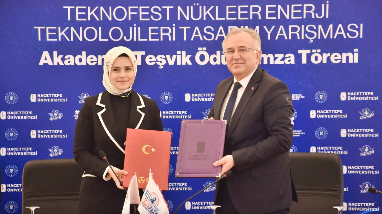 T.C. Sanayi ve Teknoloji Bakanlığı ile Türkiye Teknoloji Takımı Vakfı (T3 Vakfı) öncülüğünde düzenlenen TEKNOFEST Teknoloji Yarışmaları kapsamında, T.C. Enerji ve Tabii Kaynaklar Bakanlığı ile Türkiye Enerji, Nükleer ve Maden Araştırma Kurumu (TENMAK) yürütücülüğünde gerçekleştirilen Nükleer Enerji Teknolojileri Tasarım Yarışması Akademik Teşvik Ödülü İmza Töreni, 19 Aralık Cuma günü Hacettepe Üniversitesi ev sahipliğinde düzenlendi. Törene; Hacettepe Üniversitesi Rektörü Prof. Dr. Mehmet Cahit Güran ve T3 Vakfı Yönetim Kurulu Başkanı Dr. Elvan Kuzucu Hıdır katıldı.