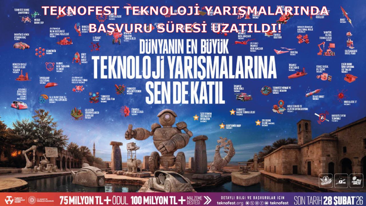 Türkiye’nin milli teknoloji hamlesine yön veren TEKNOFEST teknoloji yarışmalarına başvurular için süre uzatıldı.Yoğun ilgi ve artan talep doğrultusunda, 20 Şubat olarak açıklanan son başvuru tarihi 28 Şubat 2026 olarak güncellendi.