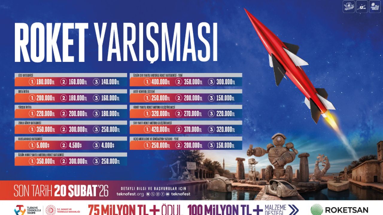 TEKNOFEST Roket Yarışması, gençlerin bilim, teknoloji ve mühendislik alanlarında kariyer hedeflerini güçlendiren, Türkiye’nin uzay ve savunma teknolojilerindeki geleceğine yön veren önemli bir platform olmayı sürdürüyor. Yarışmaya başvurular, 20 Şubat tarihine kadar gerçekleştirilebilecek.