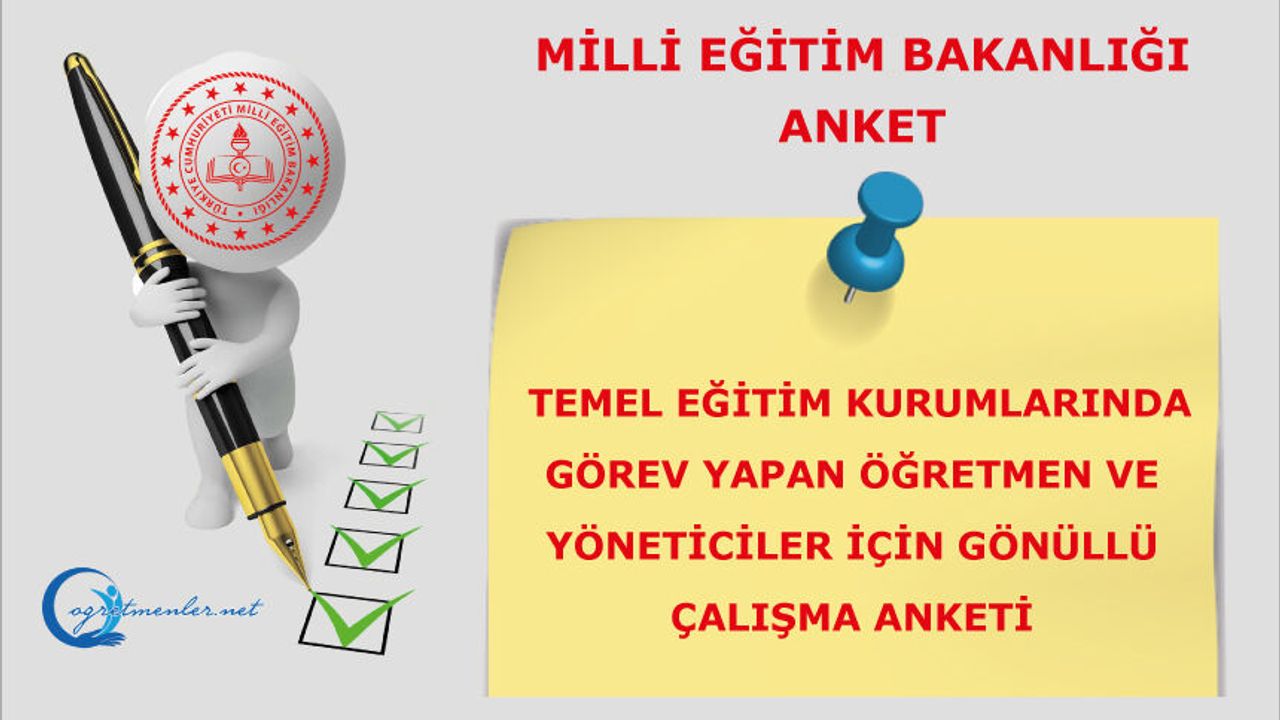 Temel Eğitim Kurumlarında Görev Yapan Öğretmen ve Yöneticiler İçin Gönüllü Çalışma Anketi için tıklayınız.