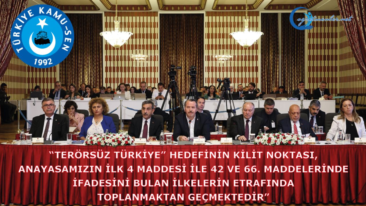 Bizim açımızdan “Terörsüz Türkiye” hedefinin kilit noktası, Anayasamızın yukarıda zikrettiğim ilk 4 maddesi ile 42 ve 66. maddelerinde ifadesini bulan ilkelerin etrafında toplanmaktan geçmektedir. Bu ortak değerler etrafında birleştikten sonra süreci yönetirken, sadece güvenlikçi bir anlayışla değil; hukukla, adaletle, vicdanla, onarıcı bir yaklaşımla hareket etmek zorundayız.” dedi.