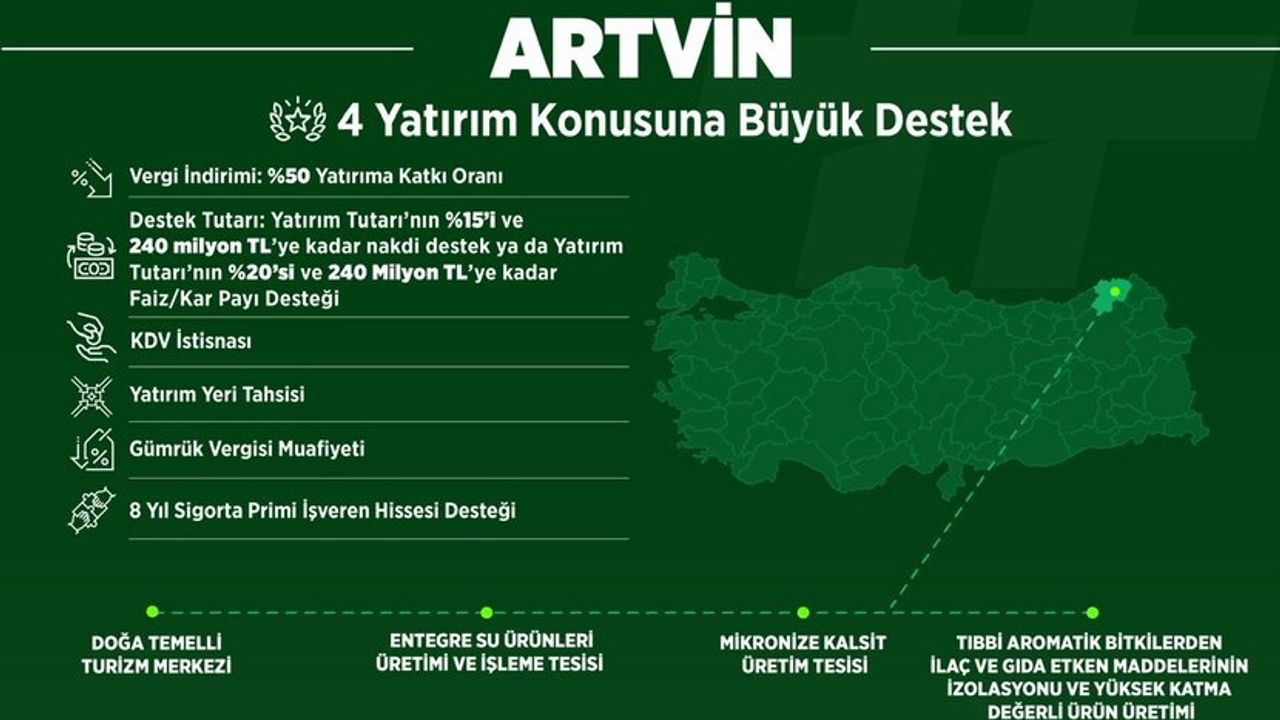 Doğudan Batıya, Kuzeyden Güneye #YerelKalkınmaHamlesi! #Artvin’in potansiyelini zirveye taşıyacak yatırım alanlarını belirledik. Yerel Kalkınma Hamlesi Teşvik Programı ile şehrimizde destekleyeceğimiz konular Doğa Temelli Turizm Merkezi Entegre Su Ürünleri Üretimi ve İşleme Tesisi Mikronize Kalsit Üretim Tesisi Tıbbi Aromatik Bitkilerden İlaç ve Gıda Etken Maddelerinin İzolasyonu ve Yüksek Katma Değerli Ürün Üretimi Güzel Artvin, #YerelKalkınmaHamlesi seferberliğinde en güçlü şekilde yerini alacak.
