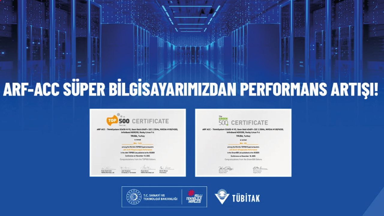 TRUBA altyapısında yer alan ARF-ACC süperbilgisayar sistemi, 18 Kasım 2025’te açıklanan uluslararası TOP500 listesinde 145. sıraya yükselerek dikkat çekici bir başarıya imza attı. Haziran 2025 sıralamasında 266. sırada yer alan sistem, NVIDIA H200 GPU yatırımıyla 121 basamaklık yükseliş gerçekleştirdi.