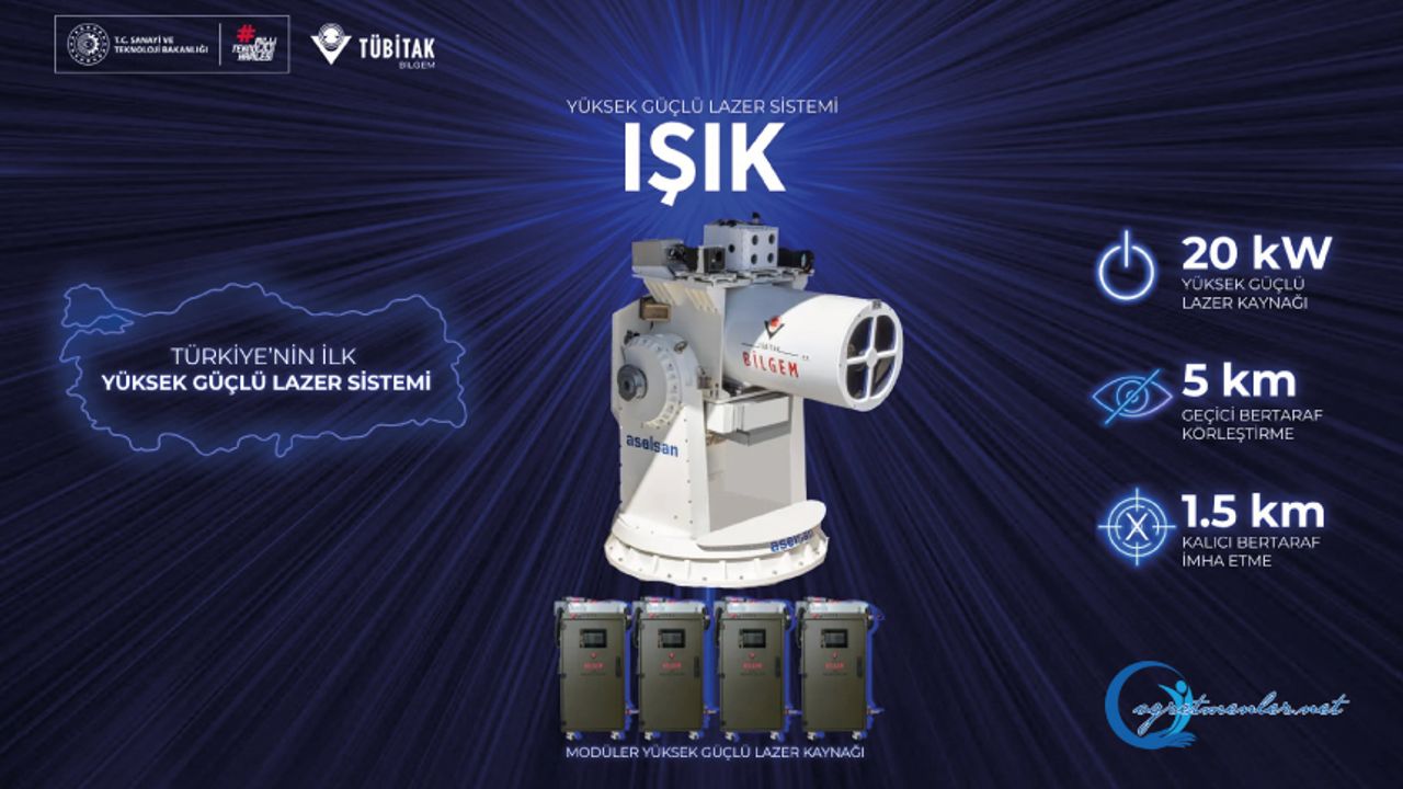 Yüksek yerlilik oranı ve modüler yapısıyla IŞIK sayesinde, modern savaş ortamlarında kritik bir eşik daha aşılıyor. 20 kW gücündeki lazer kaynağı ile kara ve deniz platformlarında etkin kullanım 5 km’ye kadar körleştirme kabiliyeti 1.5 km’ye kadar imha etme kabiliyeti Kritik bileşenlerde yüksek yerlilik IŞIK sistemi, geleceğin lazer tabanlı savunma teknolojilerinde Türkiye’nin caydırıcı ve etkin bir güç olma hedefini pekiştiriyor!