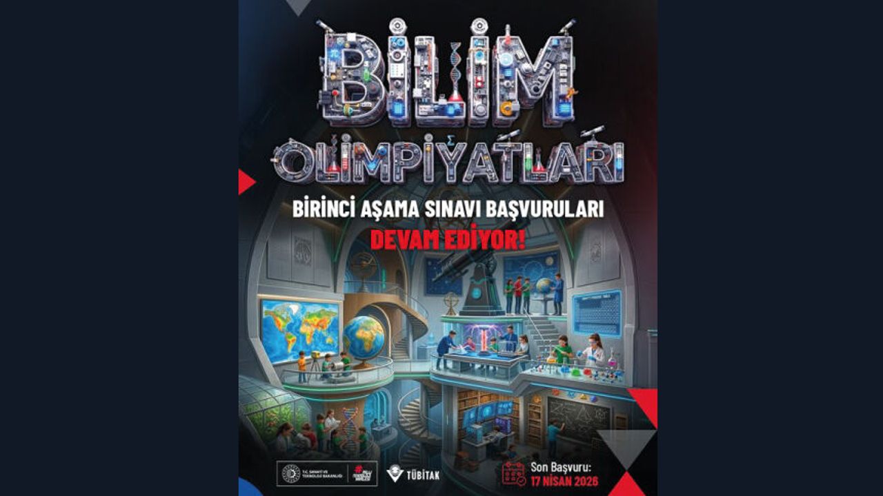 TÜBİTAK Bilim Olimpiyatları Birinci Aşama Sınavı başvuruları devam ediyor! Astronomi ve Astrofizik, Bilgisayar, Biyoloji, Coğrafya, Fizik, Kimya, Matematik, Ortaokul Bilgisayar, Ortaokul Matematik alanlarında düzenlenecek. Son başvuru tarihi: 17 Nisan 2026 Sınav tarihi: 16 Mayıs 2026 https://tubitak.gov.tr/tr/duyuru/34-bilim-olimpiyatlari-birinci-asama-sinavi-basvurulari-basladi