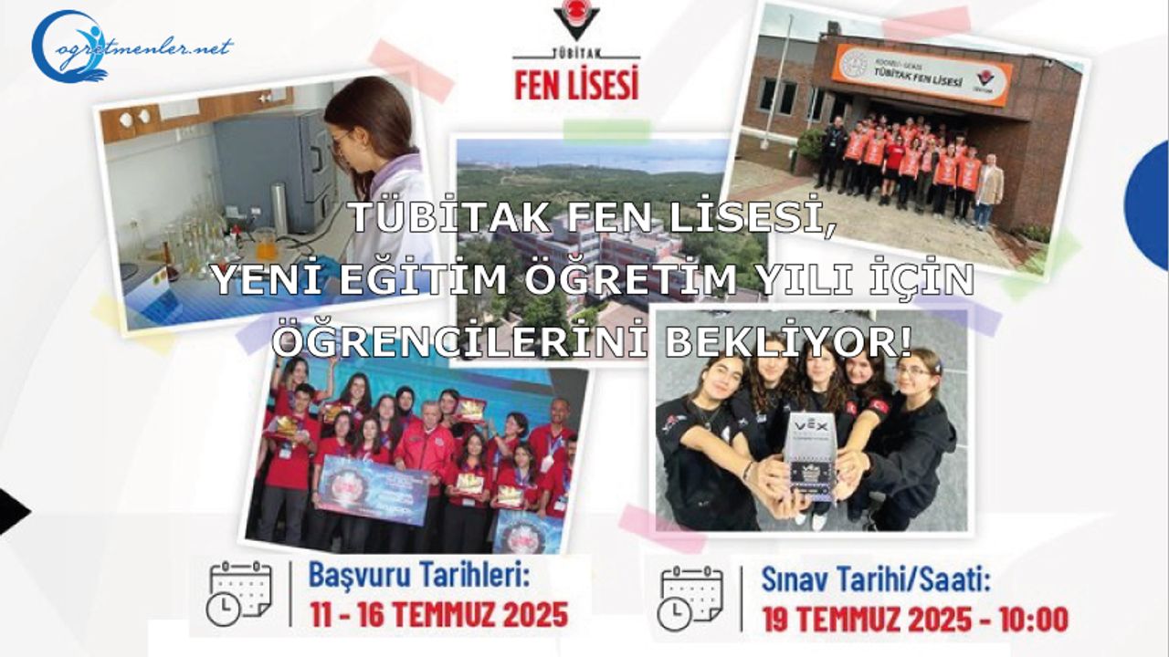 TÜBİTAK Fen Lisesi Yetenek Sınavı’na başvuru için son gün: 16 Temmuz! Başvuru şartlarını taşıyan, bilim ve teknolojiyle şekillenen bir hayata adım atmak ve hedeflerini güçlendirmek isteyen tüm öğrencilerimizin başvurularını bekliyoruz.
