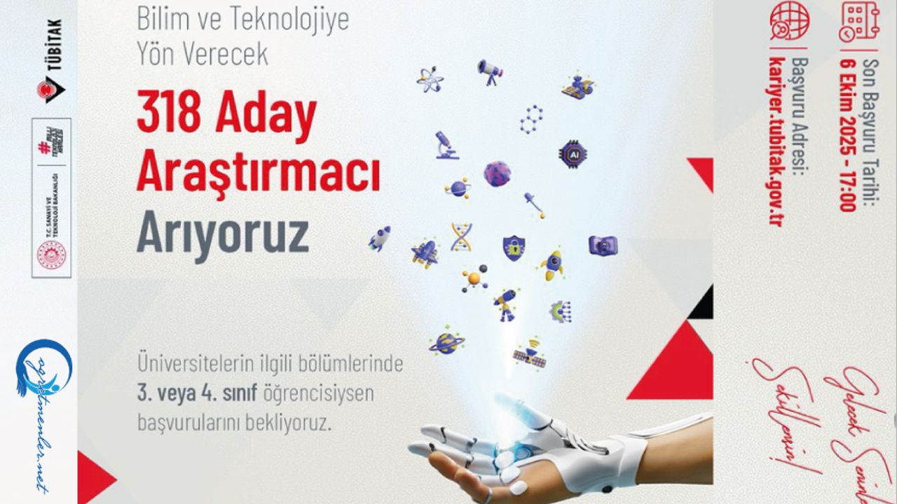 TÜBİTAK Geleceğin Araştırmacılarını Arıyor! 318 Aday Araştırmacımızdan biri olarak kariyerine TÜBİTAK’ta adım atabilir, geleceğin bilim dünyasında yerini alabilirsin. Programda Seni Neler Bekliyor? Türkiye’nin bilimsel ve teknolojik gelişiminde aktif rol alma, Alanında uzman araştırmacılarla birebir çalışma imkanı, Mezuniyet sonrası tam zamanlı Araştırmacı olma fırsatı. Son başvuru tarihi: 6 Ekim 2025 17.00 Başvuru ve detaylar için: http://kariyer.tubitak.gov.tr