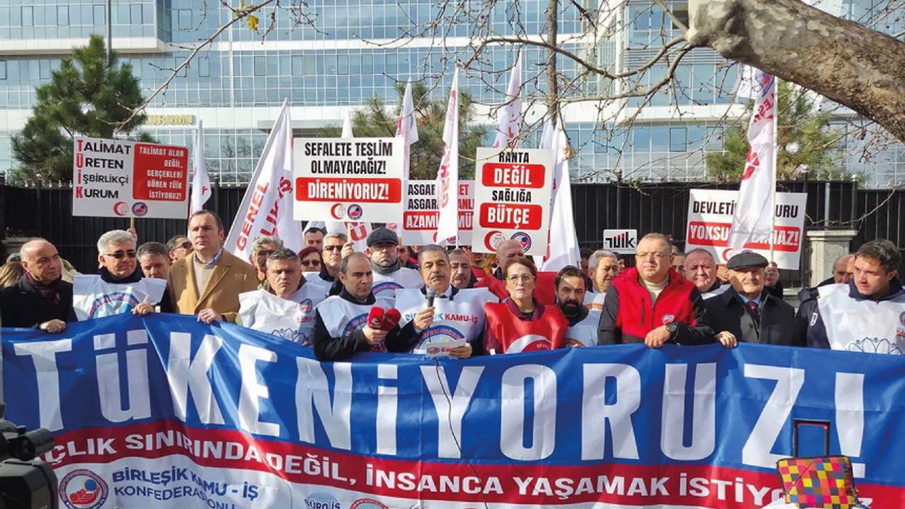Konfederasyonumuzun Ar-Ge birimi Kamu-Ar'ın aralık ayı raporuna göre açlık sınırı 30 bin 655 liraya, yoksulluk sınırı ise 94 bin 913 liraya yükseldi. Bu ne demek? Kamu emekçilerinin ezici bir çoğunluğu yoksulluk sınırı ile açlık sınırı arasında ve alım gücü günden güne düştüğü için her geçen gün açlık sınırına biraz daha yaklaşıyor demek. Kamu emeklisine “Sen yıllarını devletine verdin, namusunla çalıştın ama şimdi en temel ihtiyaçların için çocuklarına el açmak zorunda kal, torununa harçlık bile vereme” demek. Kendi sebep oldukları enflasyonu bile doğru ölçmeyenler zaten hakkı olan ücret zammını vermedikleri kamu emekçisine şimdi enflasyon farkını da doğru ödemeyecekler, hırsızlık yapacaklar demek!