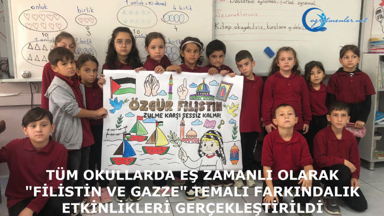 Bu doğrultuda, 81 ilde öğrenciler okul bahçeleri ve salonlarda bir araya gelerek etkinlikler düzenleyerek Filistin halkına destek mesajları verdi.