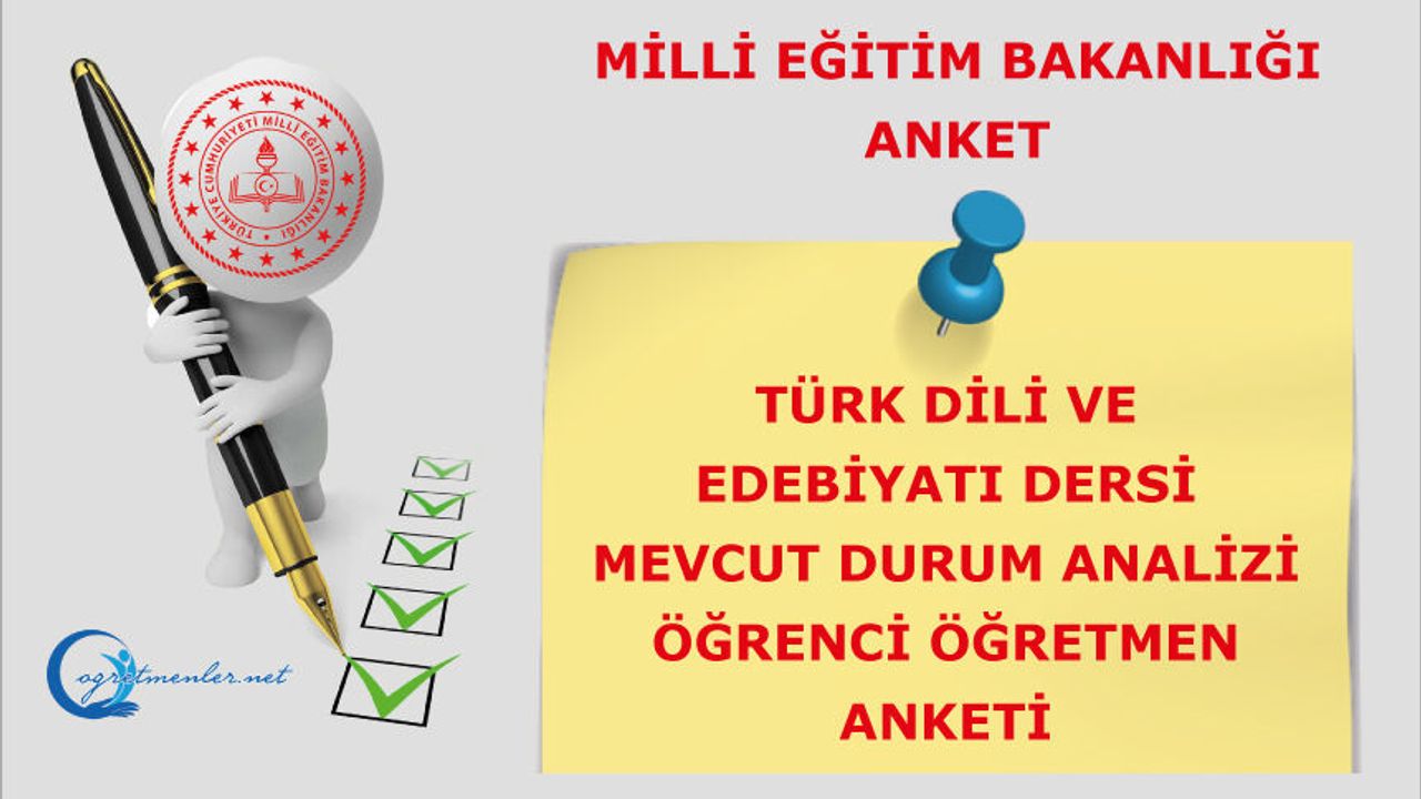 Değerli Öğretmenim, Bu anket, Türk Dili ve Edebiyatı Dersi Öğretim Programı?nın sahadaki etkilerini ve öğrenme çıktılarına ulaşma düzeyini belirlemek amacıyla Millî Eğitim Bakanlığı Talim ve Terbiye Kurulu Başkanlığı tarafından yapılmaktadır. Ankette Türk dili ve edebiyatı dersindeki öğrenme-öğretme süreçleri, anlama becerileri (dinleme/izleme, okuma) ve anlatma becerileri (konuşma, yazma) ile ilgili 4 seçenekli 30 soru yer almaktadır. Anketin yanıtlanmasının yaklaşık 15 dakika sürmesi beklenmektedir. Elde edilen veri yalnızca bilimsel amaçlarla kullanılacak olup gizlilik ilkesi çerçevesinde değerlendirilecektir. Cevaplarınız, sürecin daha etkili ve nitelikli bir şekilde yürütülmesine önemli katkı sağlayacaktır. ?Görüşleriniz bizim için değerlidir, zamanınızı ayırdığınız ve anketi içtenlikle yanıtladığınız için teşekkür ederiz. Talim ve Terbiye Kurulu Başkanlığı Eğitim Araştırmaları Daire Başkanlığı