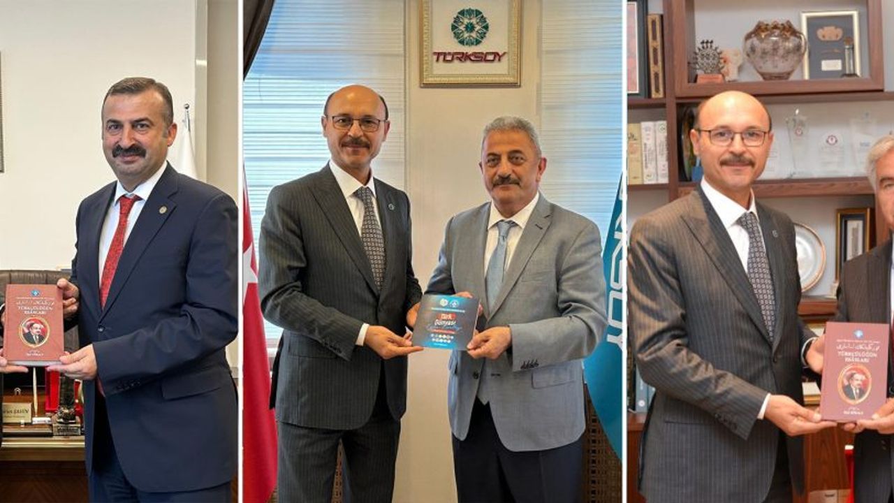 Genel Başkanımız Talip Geylan, 12.08.2025 tarihinde Türk Dil Kurumu Başkan Yardımcısı Doç. Dr. Harun Şahin, TÜRKSOY Genel Sekreter Yardımcısı Sayit Yusuf ve UNESCO Türkiye Milli Komisyonu Başkanı Prof. Dr. Öcal Oğuz’u makamlarında ziyaret etti. Ziyaretlere, Genel Başkan Yardımcımız Cengiz Kocakaplan ve Ar-Ge Koordinatörümüz Prof. Dr. Yılmaz Yeşil de eşlik etti.