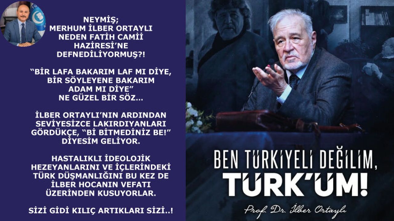 Neymiş; merhum İlber Ortaylı neden Fatih Camii Haziresi’ne defnediliyormuş?! “Bir lafa bakarım laf mı diye, bir söyleyene bakarım adam mı diye” Ne güzel bir söz… İlber Ortaylı’nın ardından seviyesizce lakırdıyanları gördükçe, “Bi bitmediniz be!” diyesim geliyor. Hastalıklı ideolojik hezeyanlarını ve içlerindeki Türk düşmanlığını bu kez de İlber hocanın vefatı üzerinden kusuyorlar. Sizi gidi kılıç artıkları sizi..!