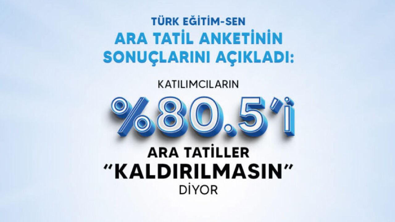 Türk Eğitim Sen Genel Merkezi de gündemin nabzını tutarak, öğretmenlerin “birer haftalık ara tatiller” üzerine görüşlerini belirlemek amacıyla bir kamuoyu araştırması gerçekleştirdi. Türkiye genelinde yürütülen araştırmaya toplam 2.748 kişi katıldı.