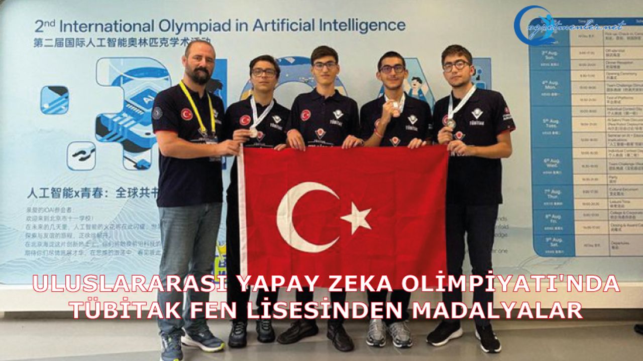 Çin'de düzenlenen Uluslararası Yapay Zeka Olimpiyatı'nda, Türk öğrencilerimizden gururlandıran başarı! TÜBİTAK 4001 Ulusal ve Uluslararası Yarışma/Etkinlik Katılım Desteği kapsamında olimpiyata katılan TÜBİTAK Fen Lisesi öğrencilerimiz;