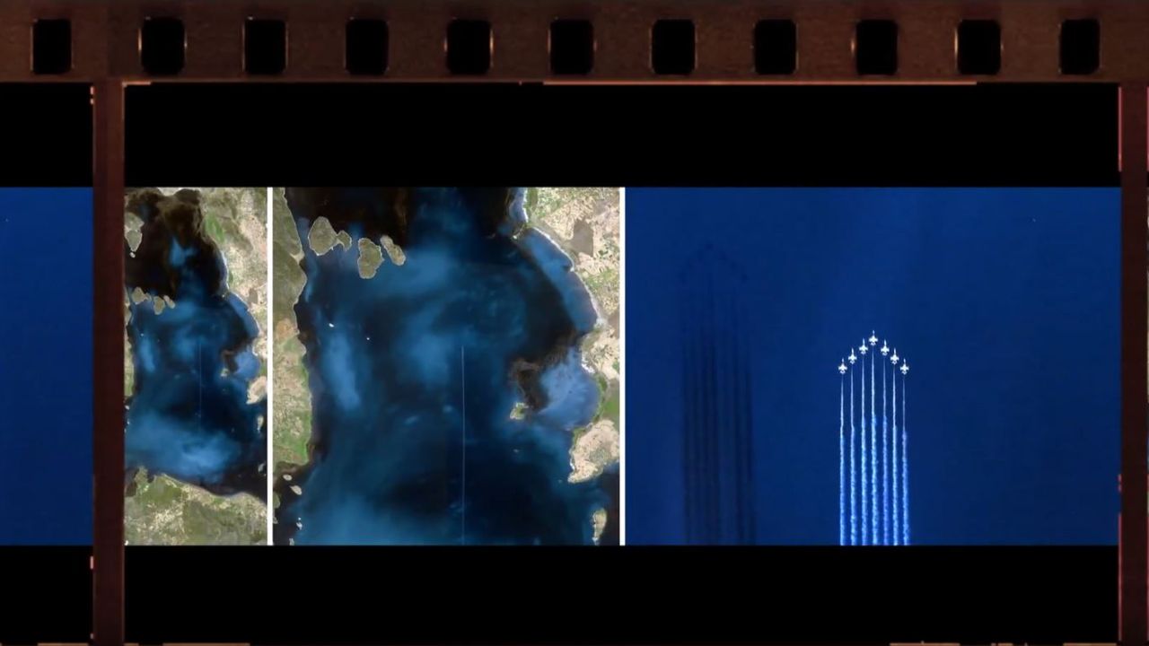 Türk Yıldızları Akrobasi Timi, Beyşehir Gölü üzerinde süzülürken; Göktürk-1 Uydumuz bu anı uzaydan ölümsüzleştirdi.