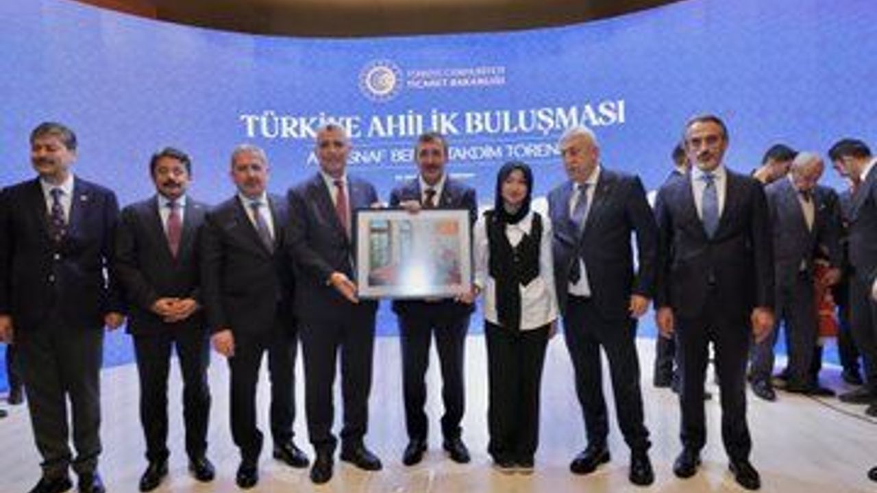 Türkiye Ahilik Buluşması | Ahi Esnaf Beratı Takdim Töreni Cumhurbaşkanı Yardımcımız Cevdet Yılmaz’ın teşrifleriyle, Ticaret Bakanlığı Konferans Salonu’nda düzenlenen törende Ahilik geleneğinin temsilcisi esnaf ve sanatkârlarımıza beratları takdim edildi. Program kapsamında, Ticaret Bakanlığı Esnaf, Sanatkârlar ve Kooperatifçilik Genel Müdürlüğü ile Millî Eğitim Bakanlığı Meslekî ve Teknik Eğitim Genel Müdürlüğümüz iş birliğinde düzenlenen “Ahi Evran ve Ahilik” temalı “Resimle Anlat, Ahiliği Yaşat” resim yarışmasında dereceye giren öğrencilerimiz de ödüllerini aldı. Türkiye birincisi olan Elif Serra Dur (İstanbul – Nesrin Uçmaklıoğlu Kız Mesleki ve Teknik Anadolu Lisesi) tarafından hazırlanan eser, Ticaret Bakanımız Ömer Bolat tarafından Cumhurbaşkanı Yardımcımız Cevdet Yılmaz’a hediye edildi. Ahilik kültürünü sanatıyla yaşatan öğrencilerimizi yürekten tebrik ediyoruz.