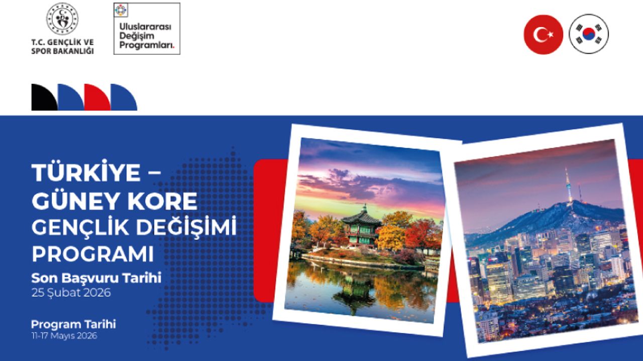 Türkiye Cumhuriyeti Gençlik ve Spor Bakanlığı ile Kore Cumhuriyeti arasında gençlik alanında iş birliğinin güçlendirilmesi, karşılıklı saygı ve dostluk bağlarının geliştirilmesi, gençlerin kültürlerarası etkileşim yoluyla bireysel ve sosyal gelişimlerine katkı sağlanması ve gençlik çalışmalarının yerinde incelenmesi amacıyla “Türkiye – Güney Kore Uluslararası Gençlik Değişimi Programı” gerçekleştirilecektir. Program iki aşamalı olarak yürütülecek olup; 11 – 17 Mayıs 2026 tarihlerinde Türk gençleri Güney Kore’de, 01 – 07 Temmuz 2026 tarihlerinde ise Güney Koreli gençler Türkiye’de misafir edilecektir.