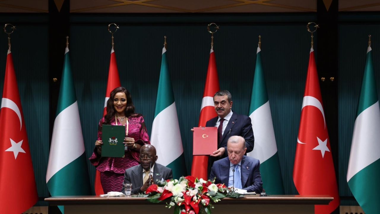 Cumhurbaşkanımız Sayın Recep Tayyip Erdoğan ile Nijerya Cumhurbaşkanı Sayın Bola Ahmed Tinubu'nun huzurlarında gerçekleştirilen törende, Millî Eğitim Bakanımız Sayın Yusuf Tekin ile Nijerya Dışişlerinden sorumlu Devlet Bakanı Sayın Bianca Odumegwu-Ojukwu Anlaşma'ya taraf oldu.