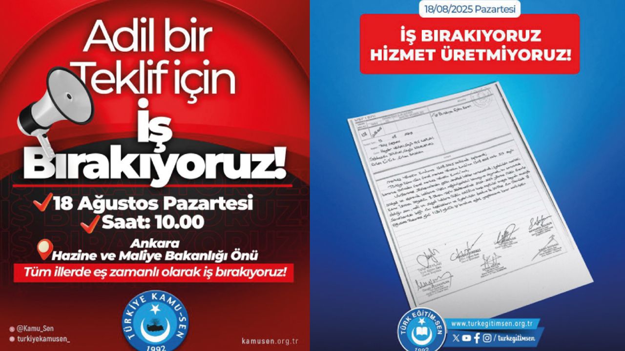 Türkiye Kamu-Sen olarak; Adil bir Teklif İçin Ankara ve tüm illerde İş Bırakıyoruz! 18 Ağustos Pazartesi 10:00 Ankara – Hazine ve Maliye Bakanlığı Önü (T.C. Hazine ve Maliye Bakanlığı, Devlet Mahallesi Dikmen Caddesi No:12) ve tüm illerimizde 1 günlük iş bırakıyoruz.