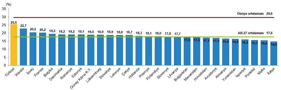 Türkiye'nin çocuk nüfus oranının %25,5 ile AB üyesi 27 ülkenin çocuk nüfus oranlarından daha yüksek olduğu görüldü.