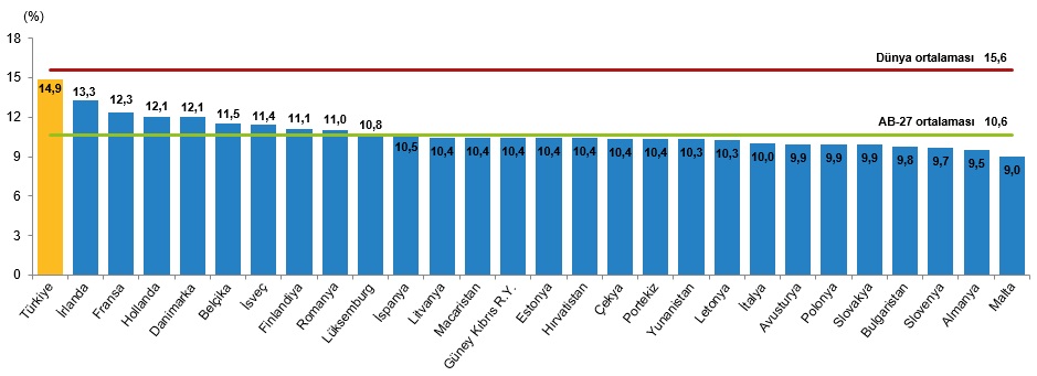 Türkiye'nin genç nüfus oranının %14,9 ile AB üyesi 27 ülkenin genç nüfus oranlarından daha yüksek olduğu görüldü.