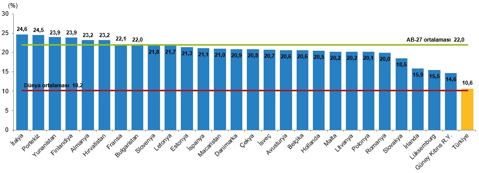 Türkiye'nin yaşlı nüfus oranının %10,6 ile AB üyesi 27 ülkenin yaşlı nüfus oranlarından daha düşük olduğu görüldü.
